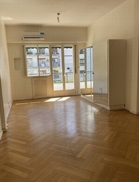 Depto alegre en muy buenas condiciones Pisos hidrolaqueados, con balcon, muy luminoso. tiene una antesala que puede servir para escritorio o barra para comer. Es un sexto piso y tiene muy buena ventilacion. Es silencioso. Contrefrente a excelnte pulmon verde de manzana. tiene aire acondicionado, toldo y muchos placares ALQUILER:.- mas Gastos