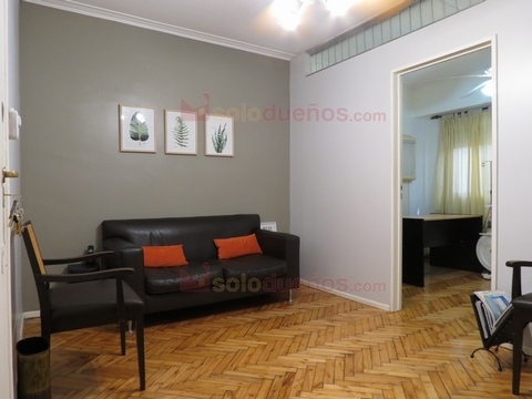 3 Amb en la zona de Balvanera. A 100mts de Av. Corrientes. 60 m2 Aproximados totales. Actualmente 4 Amb. 1er piso por escalera. Se ingresa x Living comedor, hoy sala de espera. Piso de parquet y ventilador. Habitacion I/Oficina con piso de parquet, ventilador y tiro balanceado. Habitacion II posee piso de porcelanato, armario empotrado y Aire acondicionado. Habitacion III con piso parquet, armario empotrado y aire acondidionado. Baño completo. Cocina y Lavadero. Fue remodelado en 2002. Excelente estado. Escucho oferta-permuta por casa en CABA
